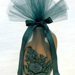 10’lu Kadife Simli Çizgili Yeşil Duvak