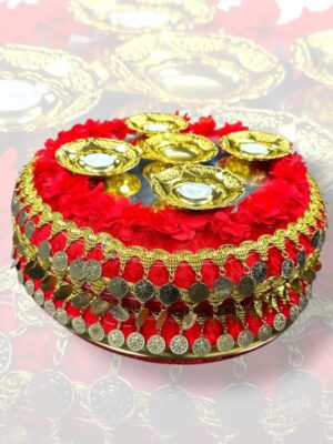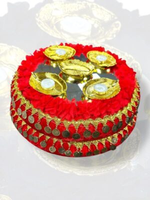 KIRMIZI BEYAZ SÜSLÜ PONPON KINA SEPET TEPSİ TAKIMI