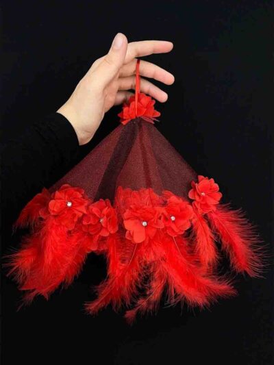 GELİN MENDİLİ TÜYLÜ LAZER GÜLLÜ 7 RENK