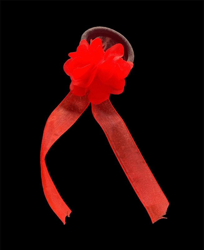 KIRMIZI KUMAŞ GÜLLÜ NEDİME BİLEKLİĞİ LASTİKLİ 12 ADET