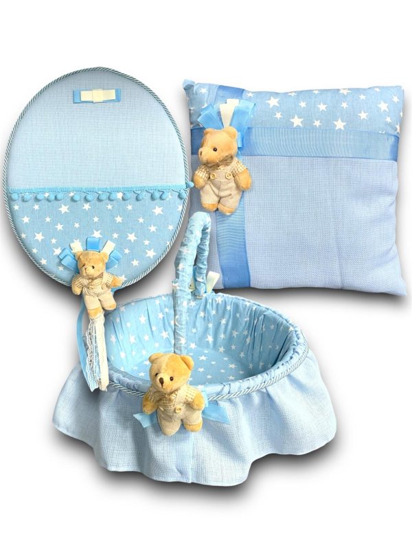 MAVİ AYICIKLI BEBEK SETİ 3'LÜ TAKIM YASTIK KAPI SÜSÜ SEPET