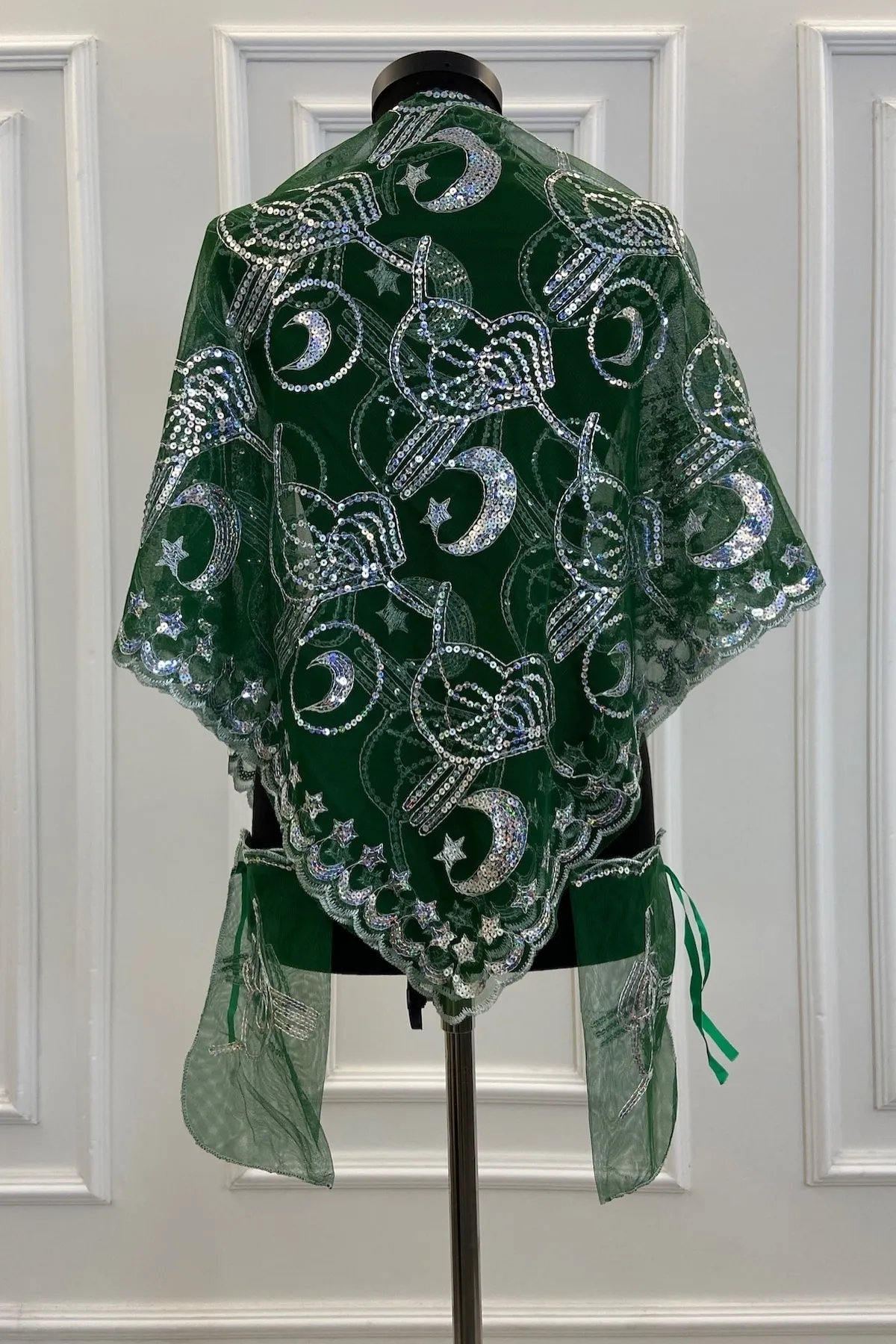 Yeşil Pullu Ayyıldız Tuğralı Kına Örtüsü Duvak Set
