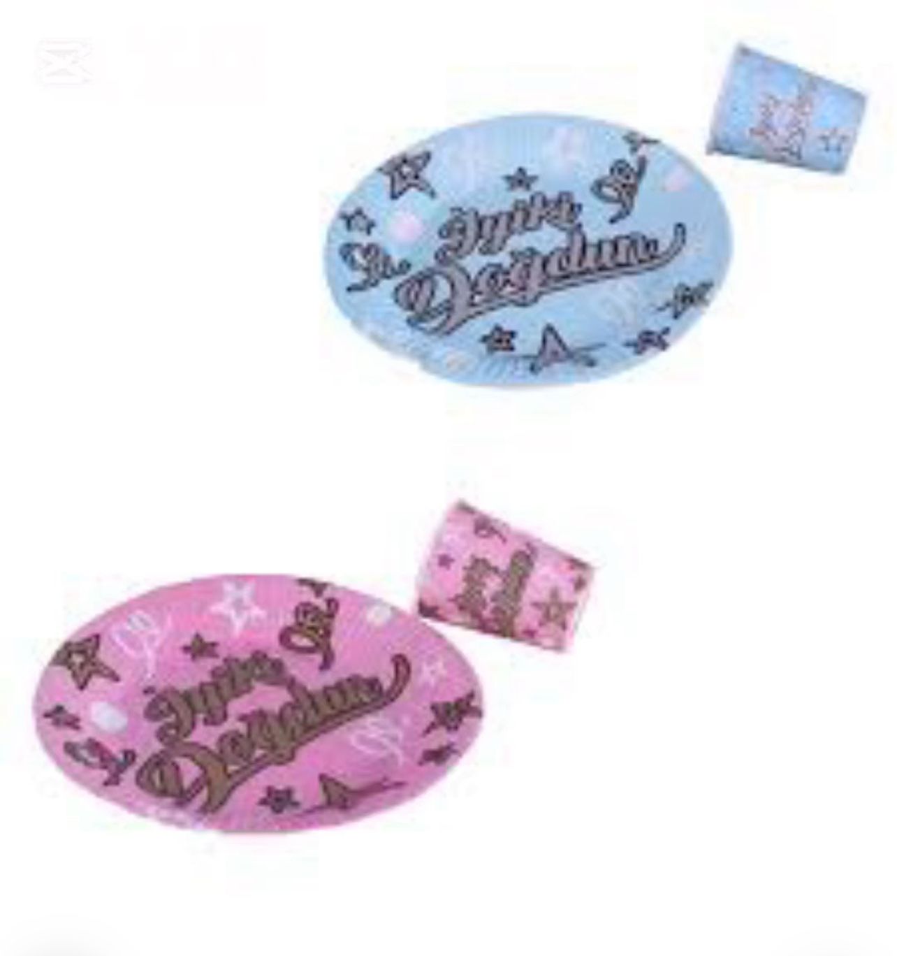 1 Yaş Yazılı Mavi-Pembe Tabak Bardak 8'li