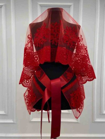 KIRMIZI OYA MODEL DUVAK YÜZ ÖRTÜSÜ SİMLİ TAKIM