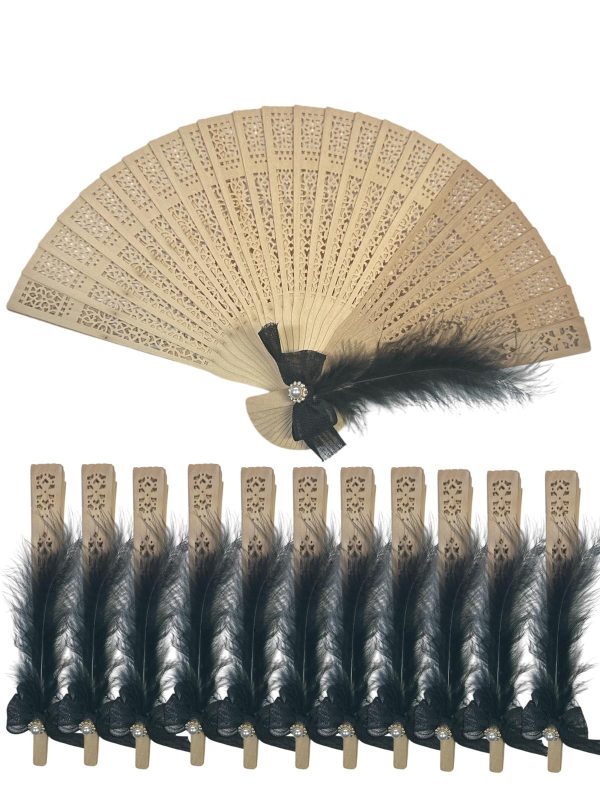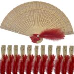 SÜSLÜ TÜYLÜ AHŞAP YELPAZE 12’Lİ 5 RENK